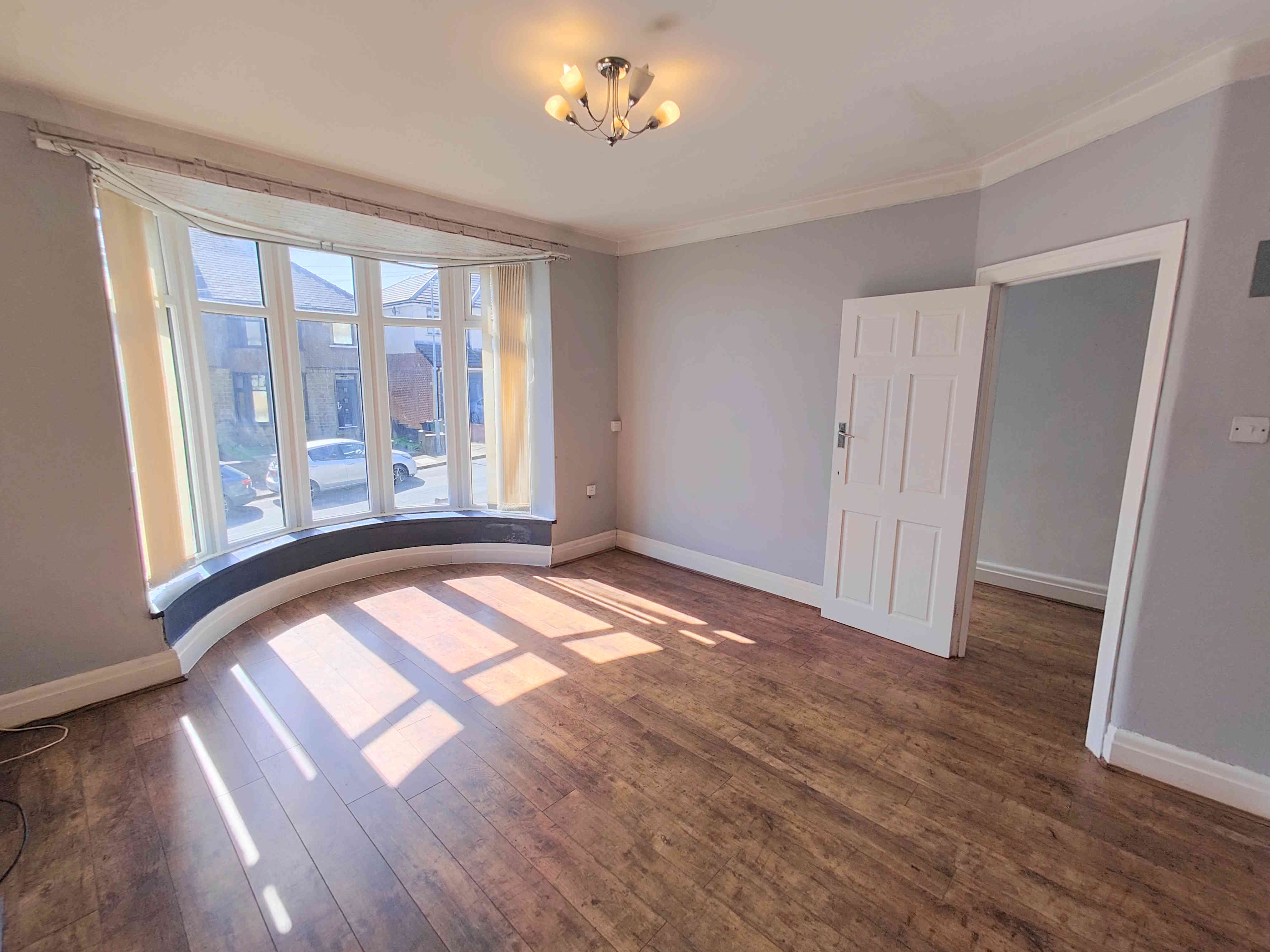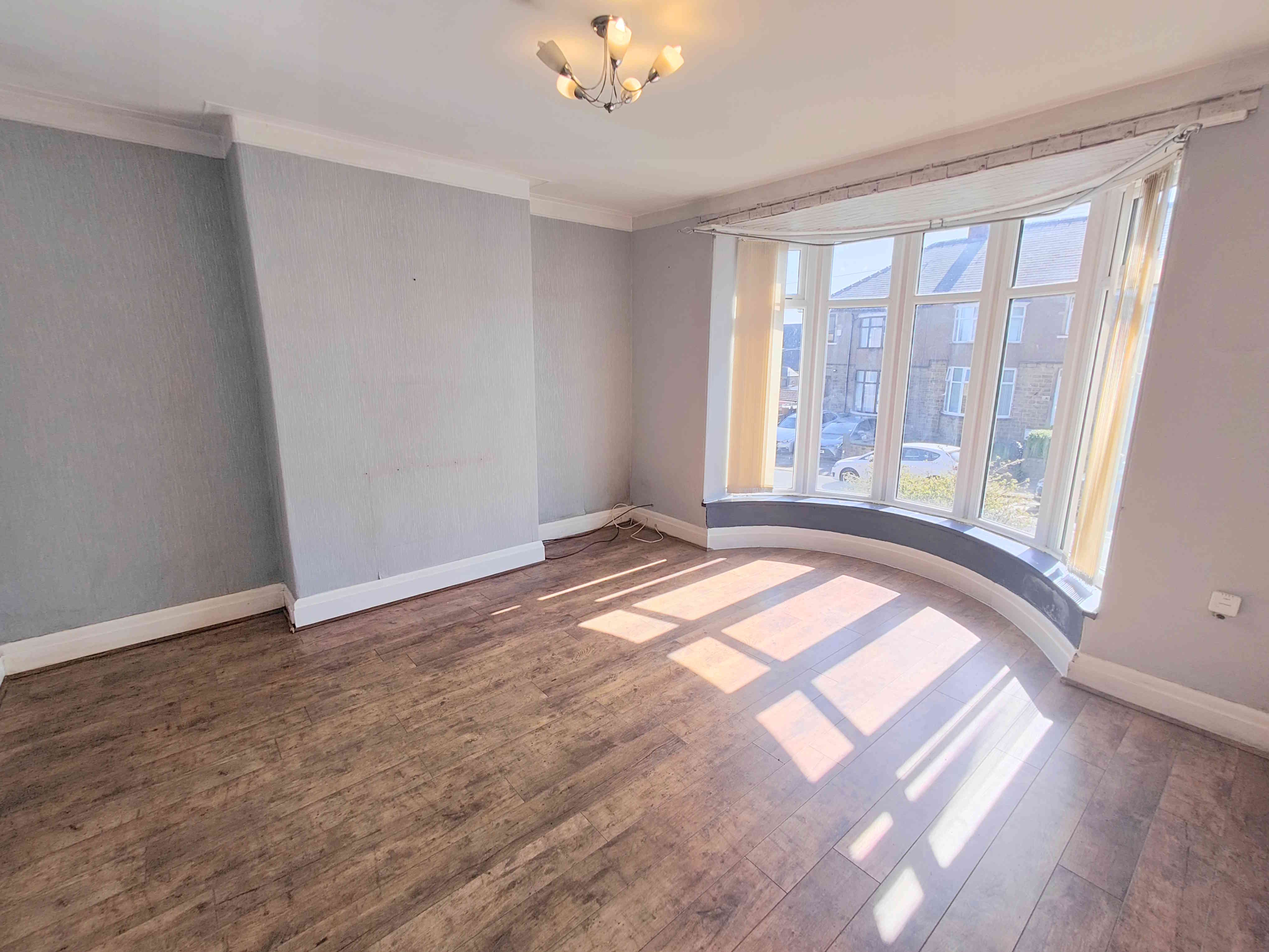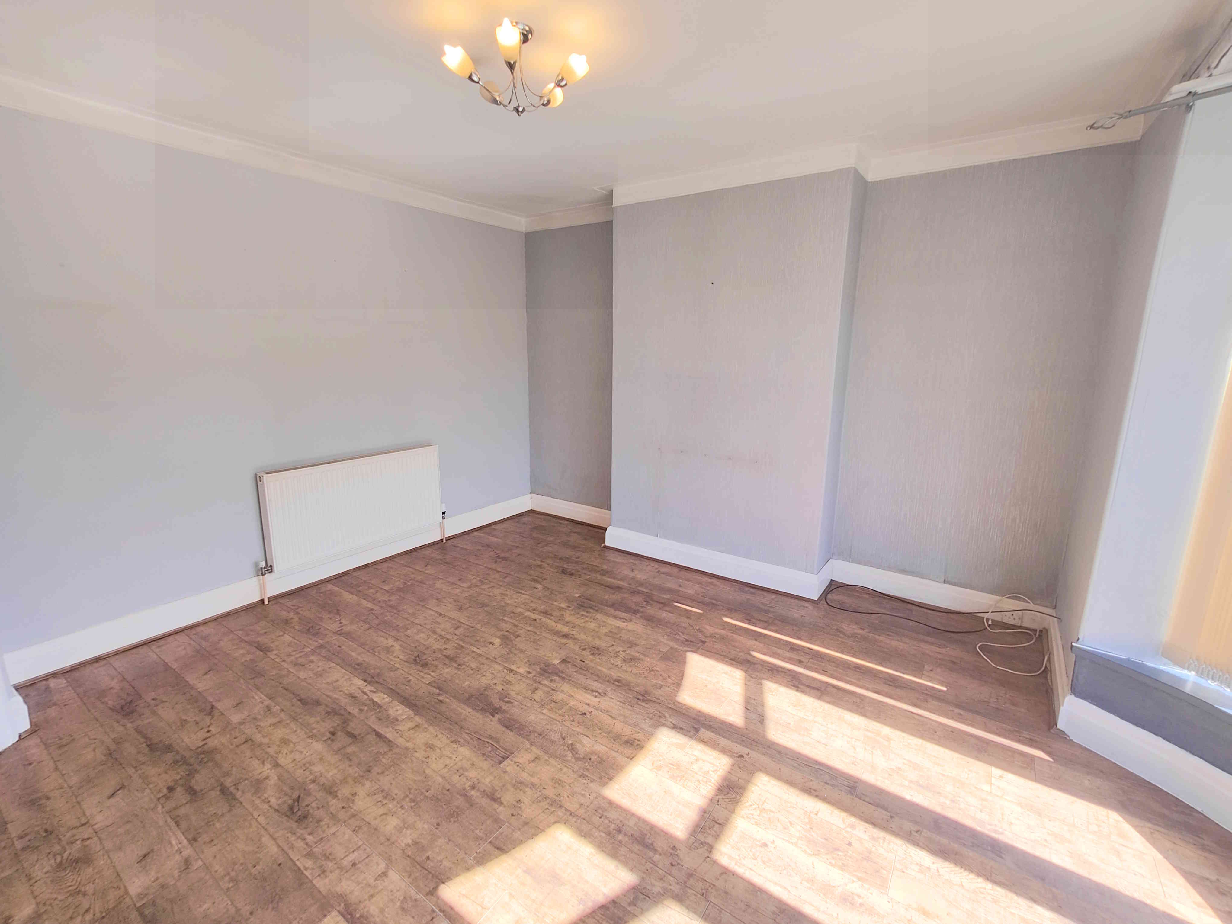 A large and spacious living room that offers ample space for a three piece suite along with additional furniture. A large uPVC double glazed bay window, to the front elevation, bathes the whole room in ample natural light. With a wood laminate floor, single radiator, cornice to ceiling, central light fitting and a television access point.