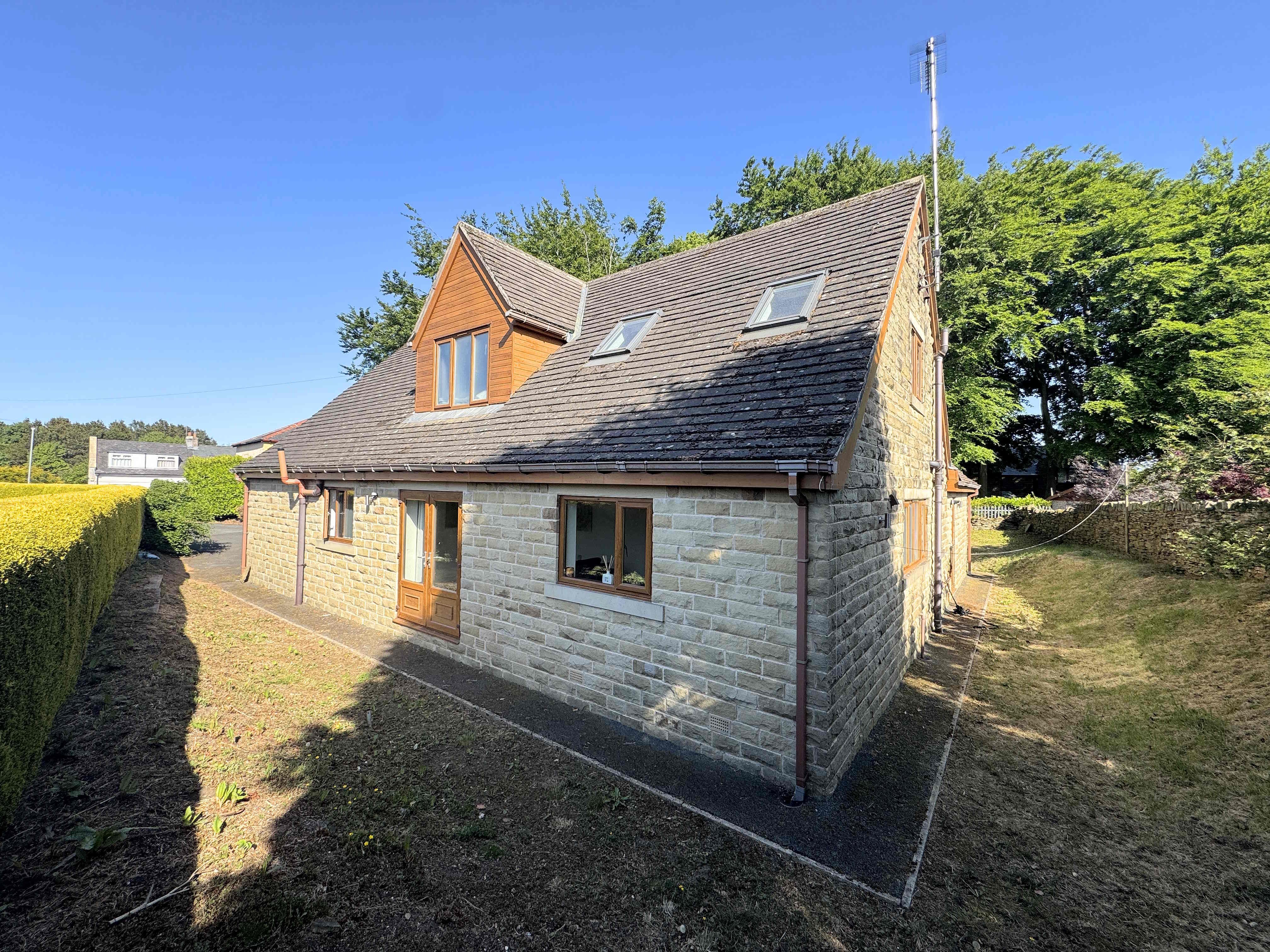 Set on a generous plot, this property benefits from a large private driveway providing off-road parking for multiple vehicles. Lawned areas extend around three sides of the property with a path running all the way around.