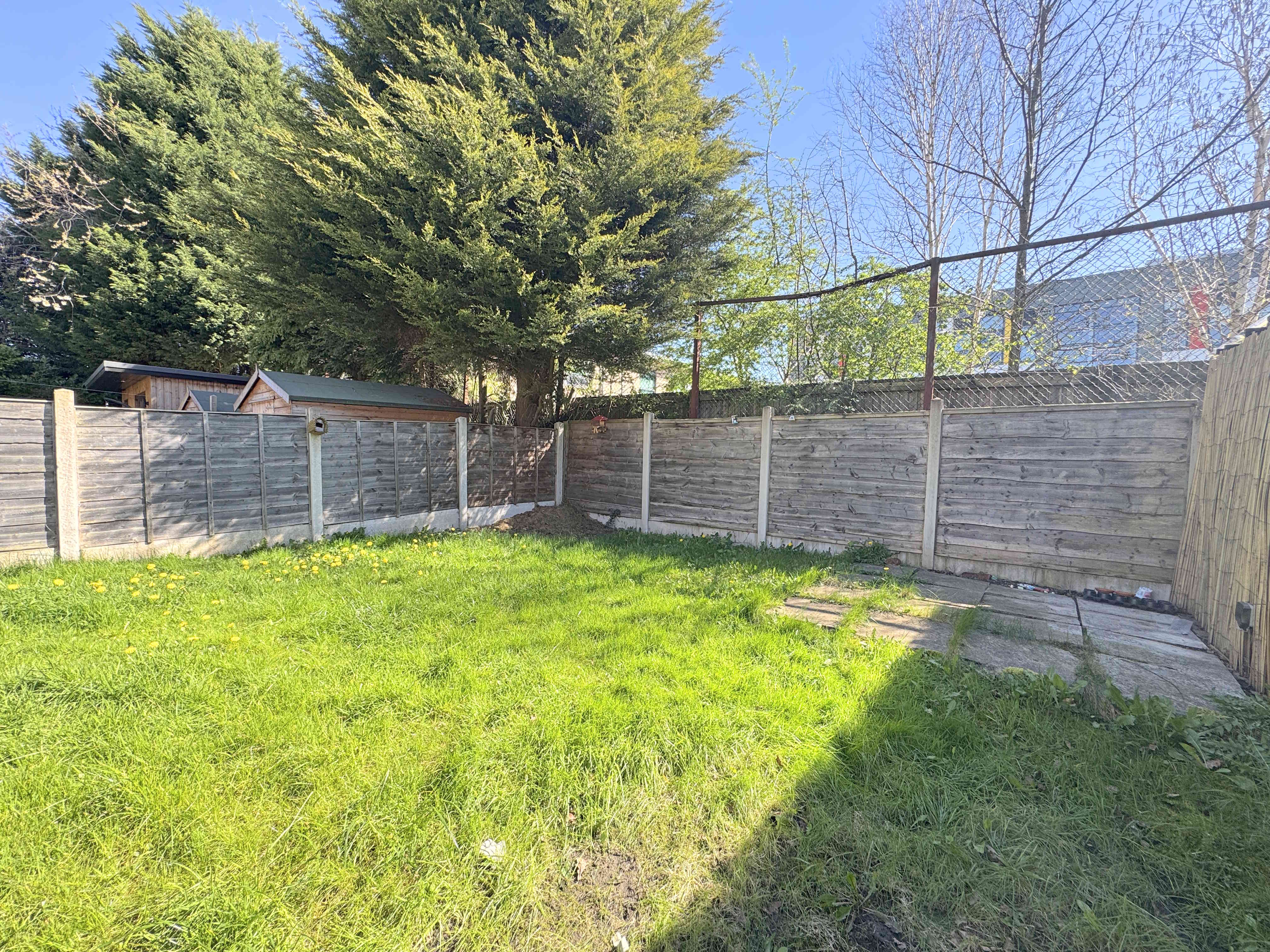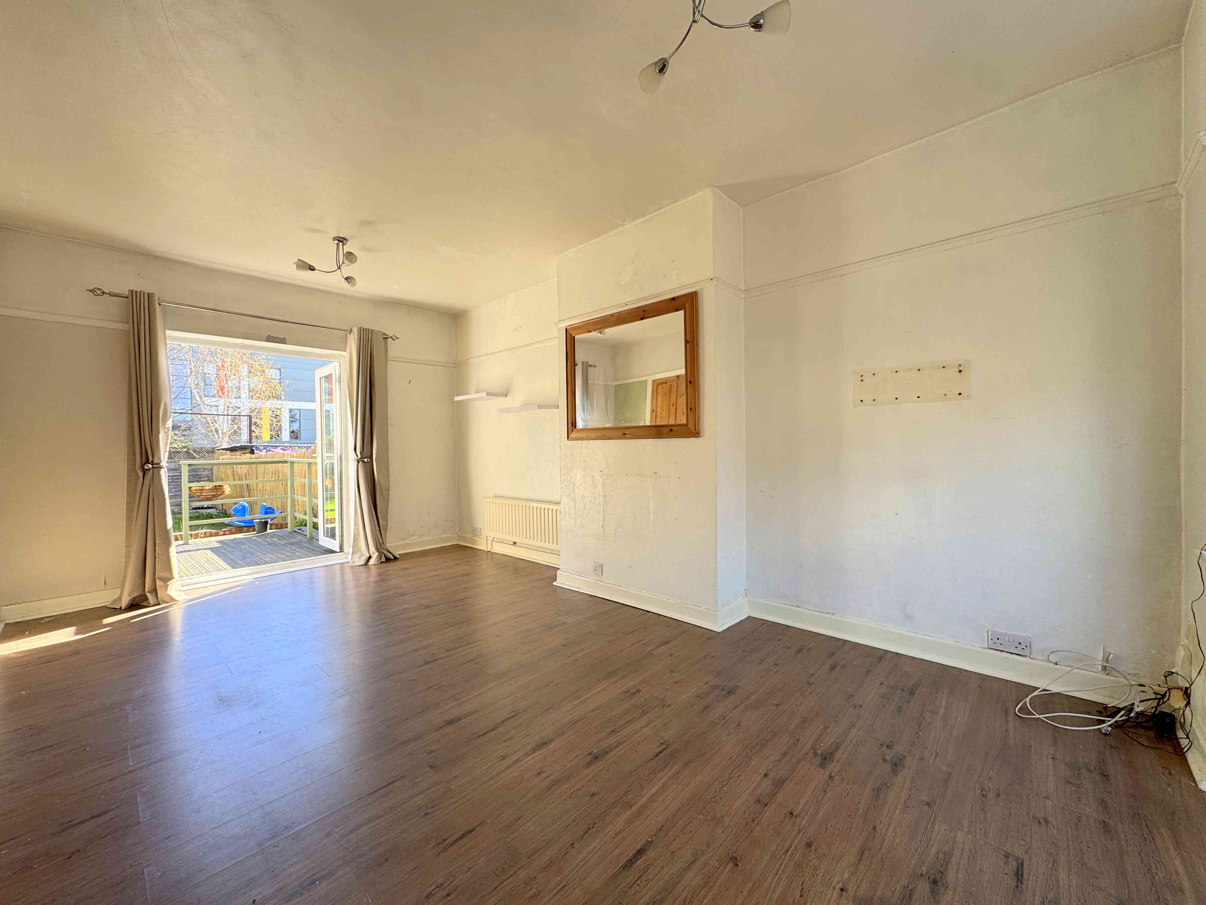 To the front, the property benefits from a block-paved driveway and a flagged pathway leading to the rear garden. The enclosed rear garden features a wooden decking area, a flagged patio, and a lawn, offering excellent potential to create a stunning outdoor space.
