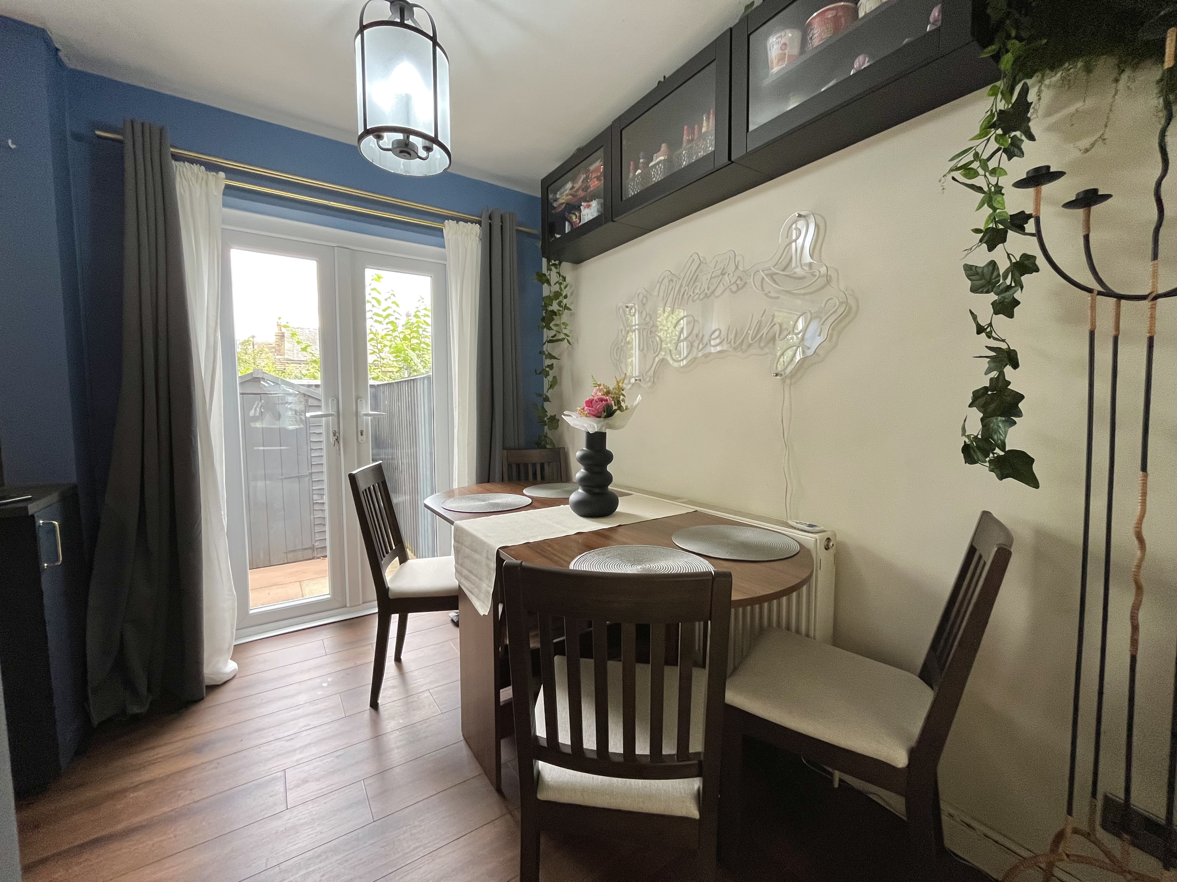 A bright and welcoming lounge featuring under-stair storage and an open archway into the dining kitchen. Finished with a radiator and a large UPVC bay window allowing ample of natural light.