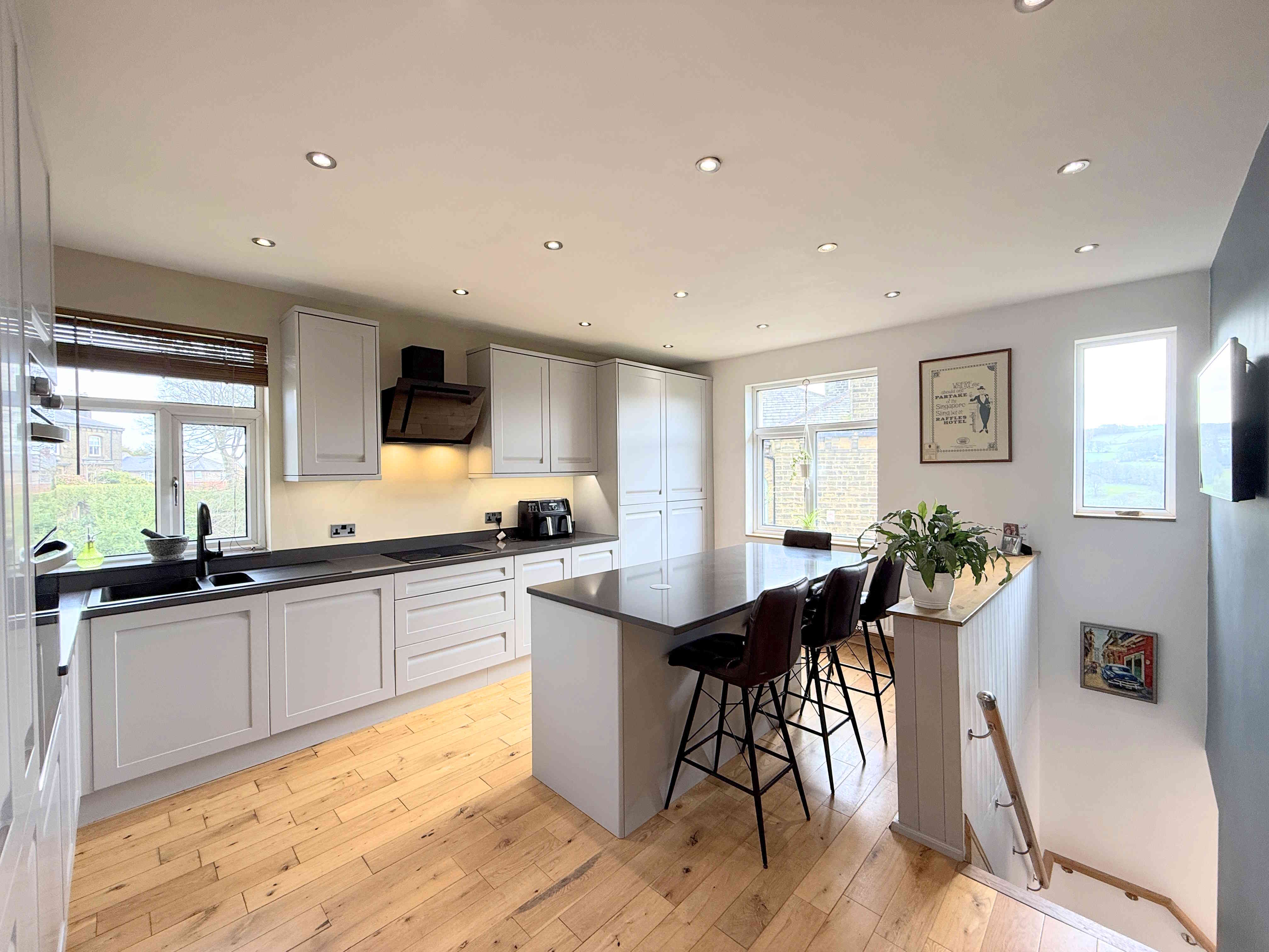 **ATTENTION ALL YOUNG & GROWING FAMILIES** A truly exceptional and unique FOUR/FIVE BEDROOM detached home, which is presented to an extremely high standard along with top spec fixtures and fittings and is situated in the highly sought-after area of Stainland. Perfectly placed for those seeking quick and easy access to the M62 motorway, within proximity to highly regarded schools, local amenities, and beautiful countryside walks right on the doorstep. This spacious home previously a bungalow now provides versatile living accommodation across two floors. Boasting superb outdoor spaces including a large Yorkshire stone patio with sunken hot tub, an impressive, detached garden room, and hillside views, this remarkable property is ideal for families looking for comfort, convenience, and excellent lifestyle features. An internal inspection is strongly advised to fully appreciate the size and quality of accommodation on offer.