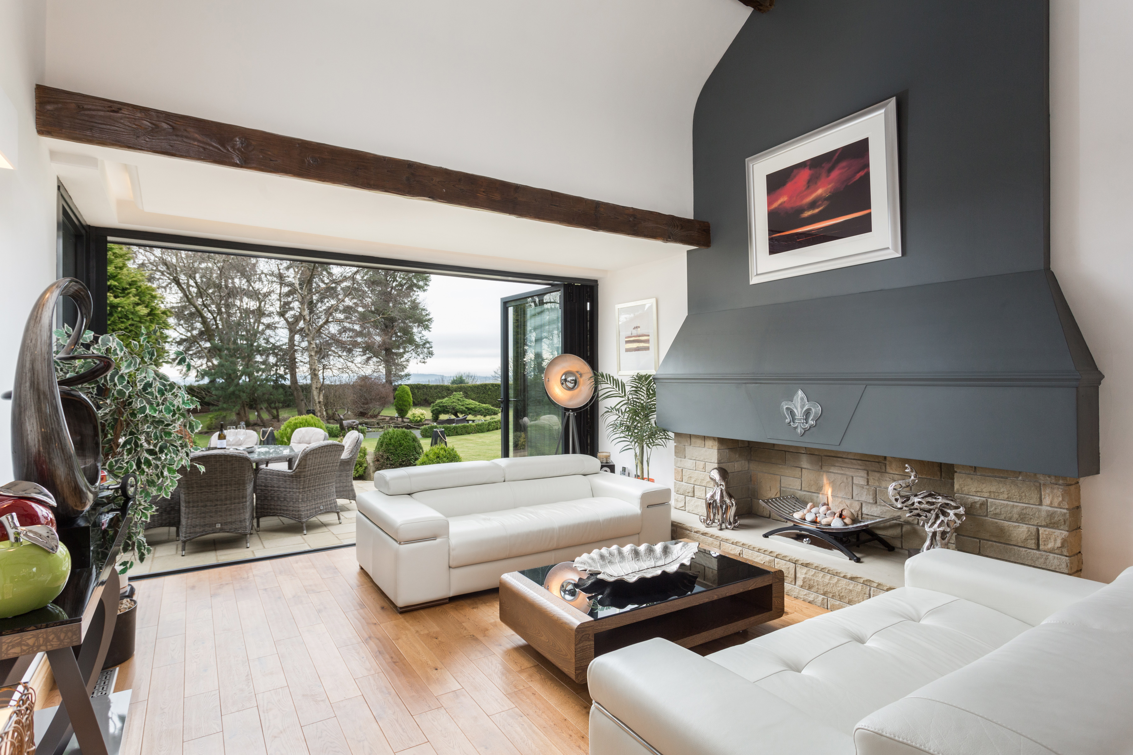 An entertainers dream springs to mind when you see this amazing room, where no expense has been spared on this Nobila NXL Artist designed and fitted kitchen. There are a wide range of wall and base units along with a large island unit and breakfast bar, where together they boast more than ample storage space for this size of property. All the integrated appliances are SMEG to include a tall fridge, tall freezer, and a dishwasher along with built-in twin electric SMEG ovens and a SMEG induction hob with a built-in downdraft extractor fan. To further compliment this kitchen are the granite worktops and an under worktop Blanco one and a half bowl sink with a Quooker instant boiling hot water tap. To complete this stunning room to a high standard and spec is a darkened mirror splash back, large porcelain floor tiles with under floor heating, a vaulted ceiling with two electric Velux windows and a tinted, double glazed aluminium, anthracite floor to ceiling and full length window wall, which also has a matching door that opens out to the side driveway.