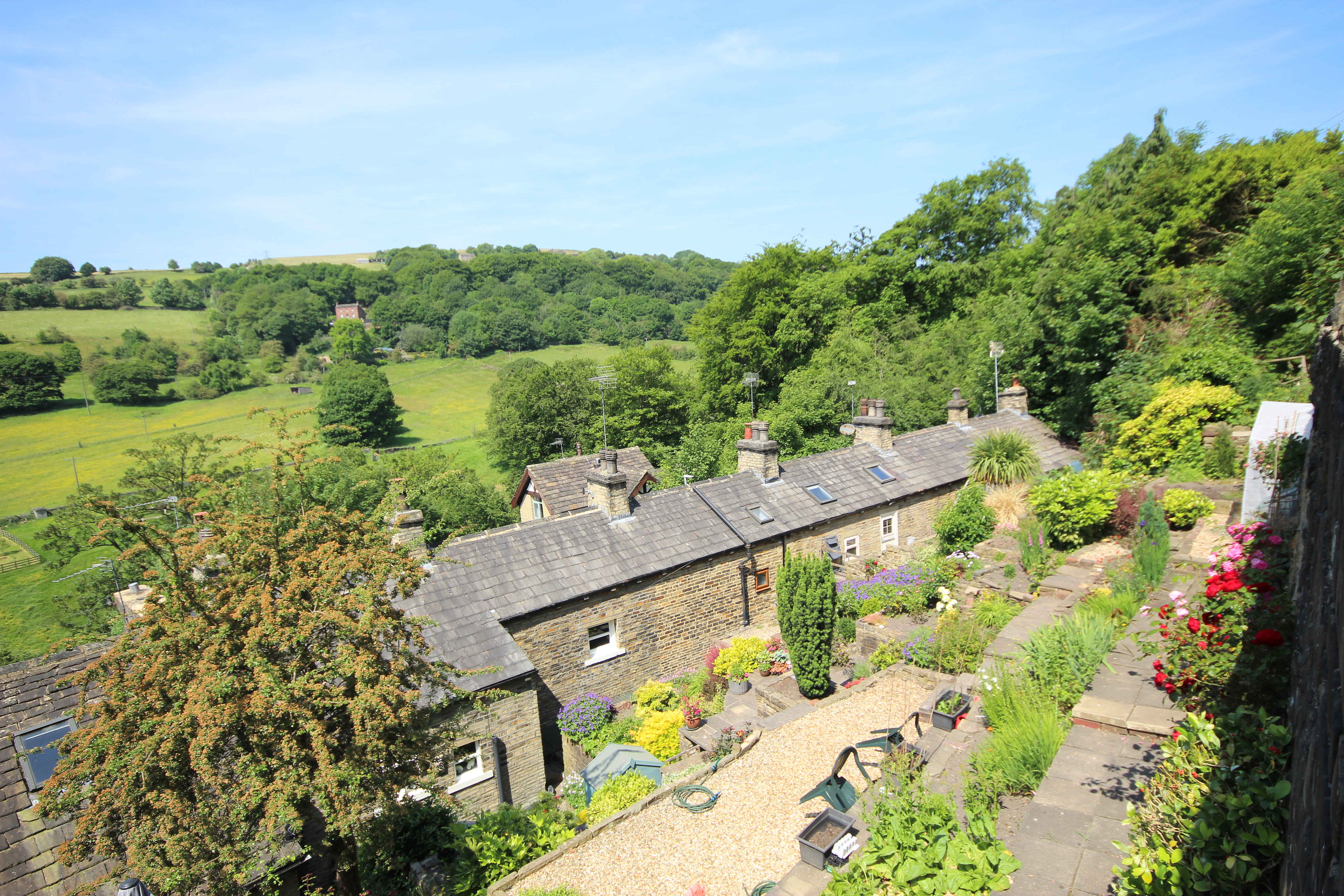 There is a yard to the front and side of the property. To the rear there is an elevated garden which does need work. However, as the neighbours have developed their gardens it is easy to see what can be done. This area if developed would boast the stunning views across the valley as you can see in the photos.
