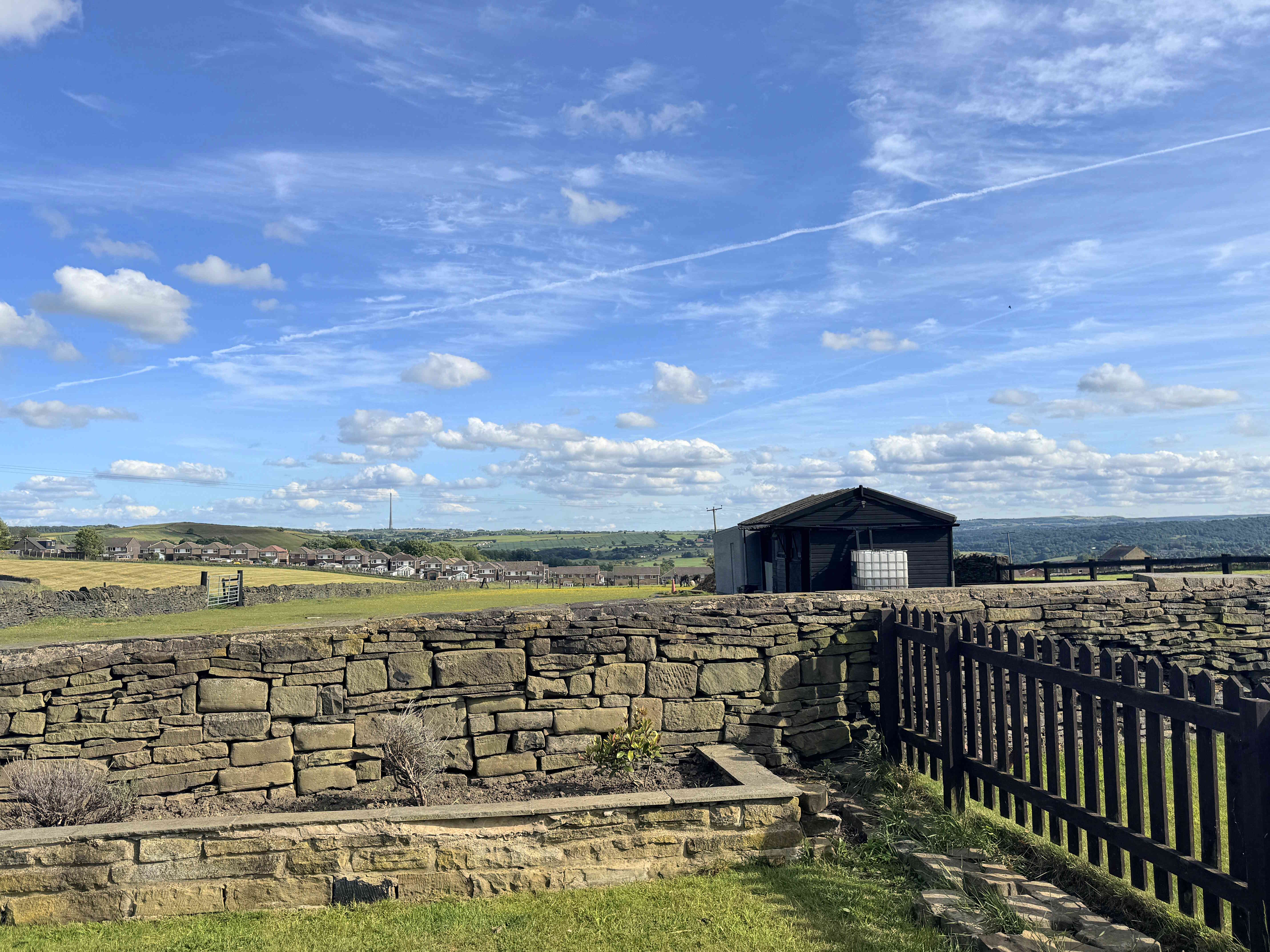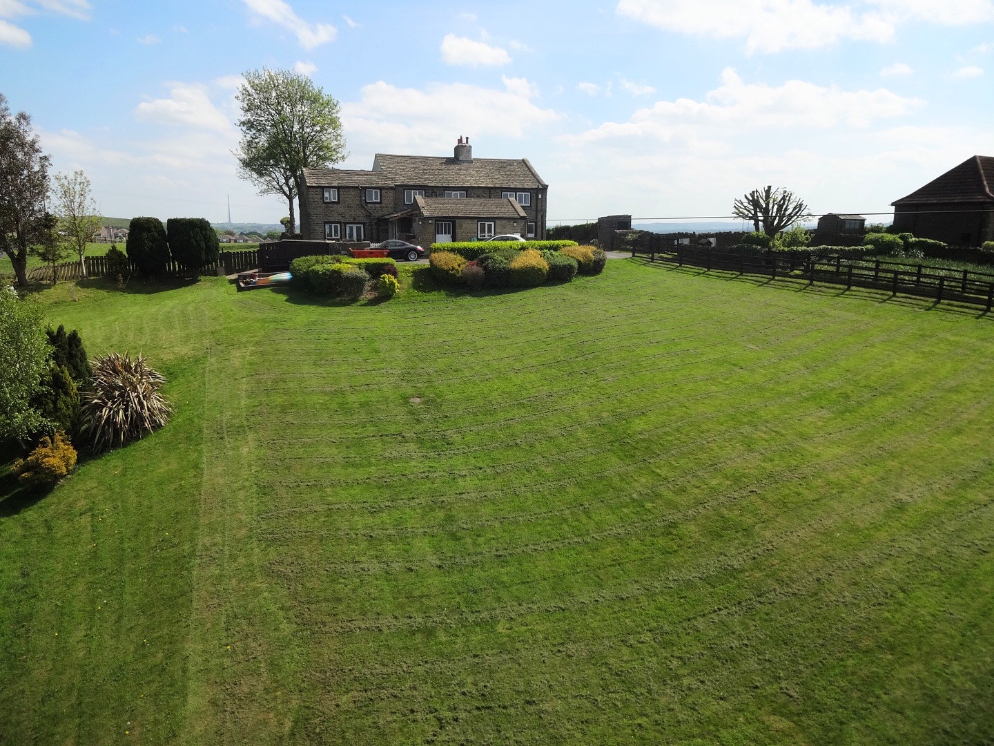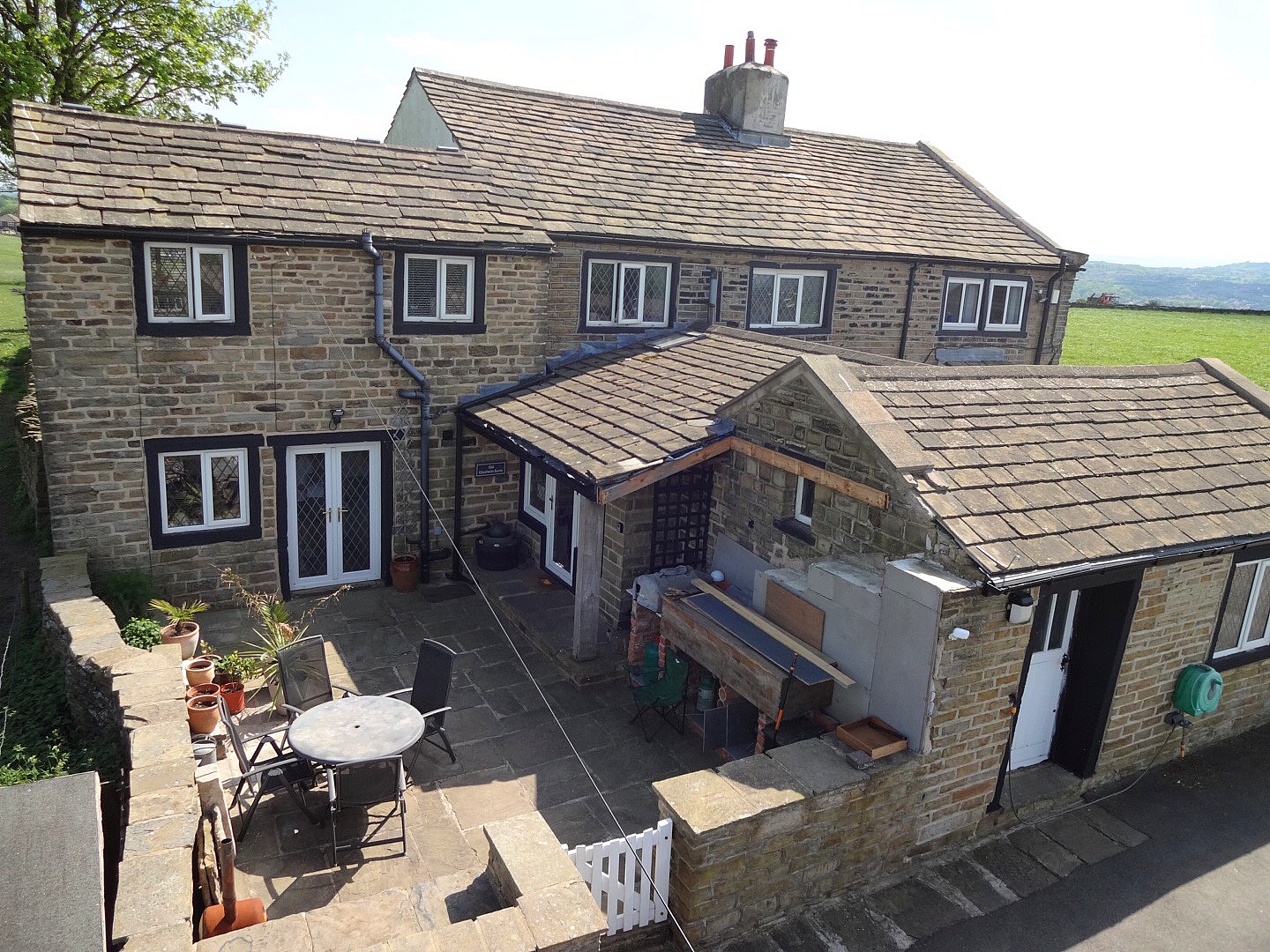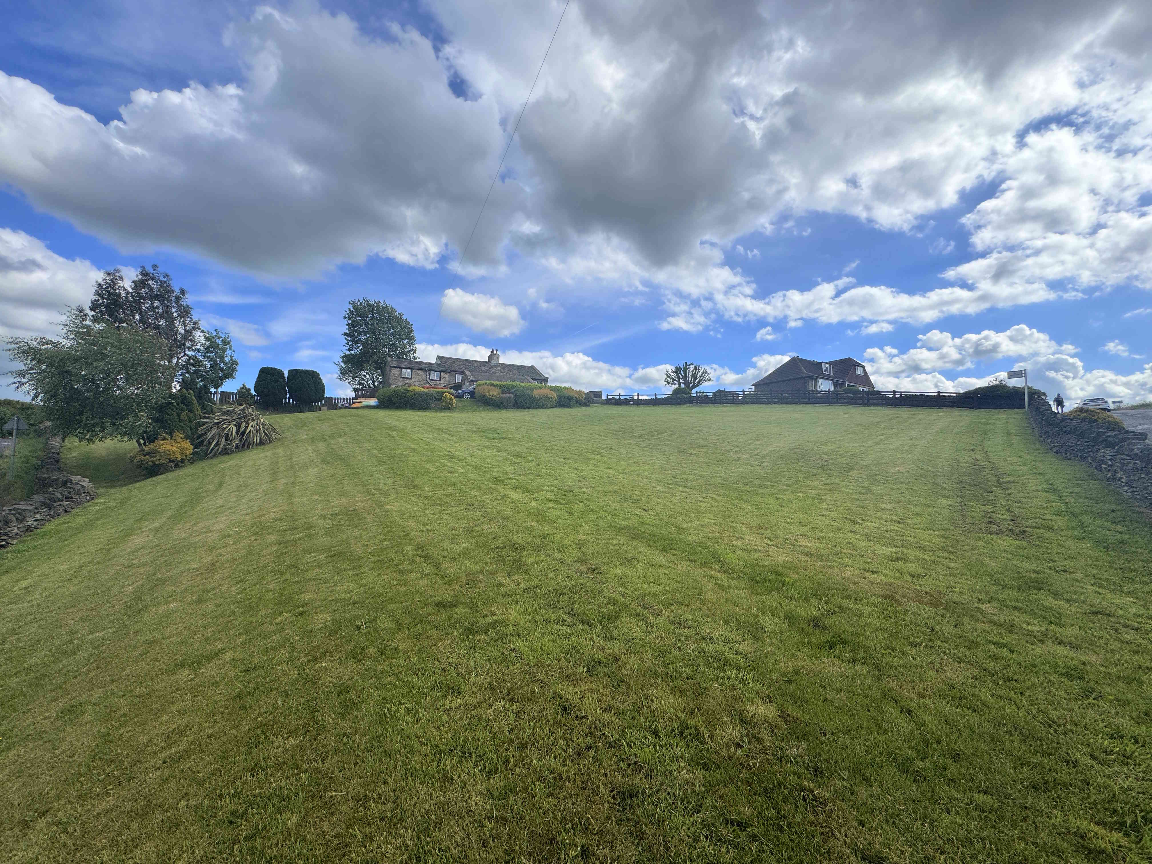 The property is approached via a shared driveway leading to a private drive with space for multiple vehicles. To the front is an enclosed patio area with far-reaching views. The rear of the property offers an enclosed garden with lawn and a flagstone patio area, enjoying uninterrupted panoramic views including Emley Moor and Castle Hill. Additionally, the property benefits from approximately 1.25 acres of surrounding land, offering exceptional outdoor potential.