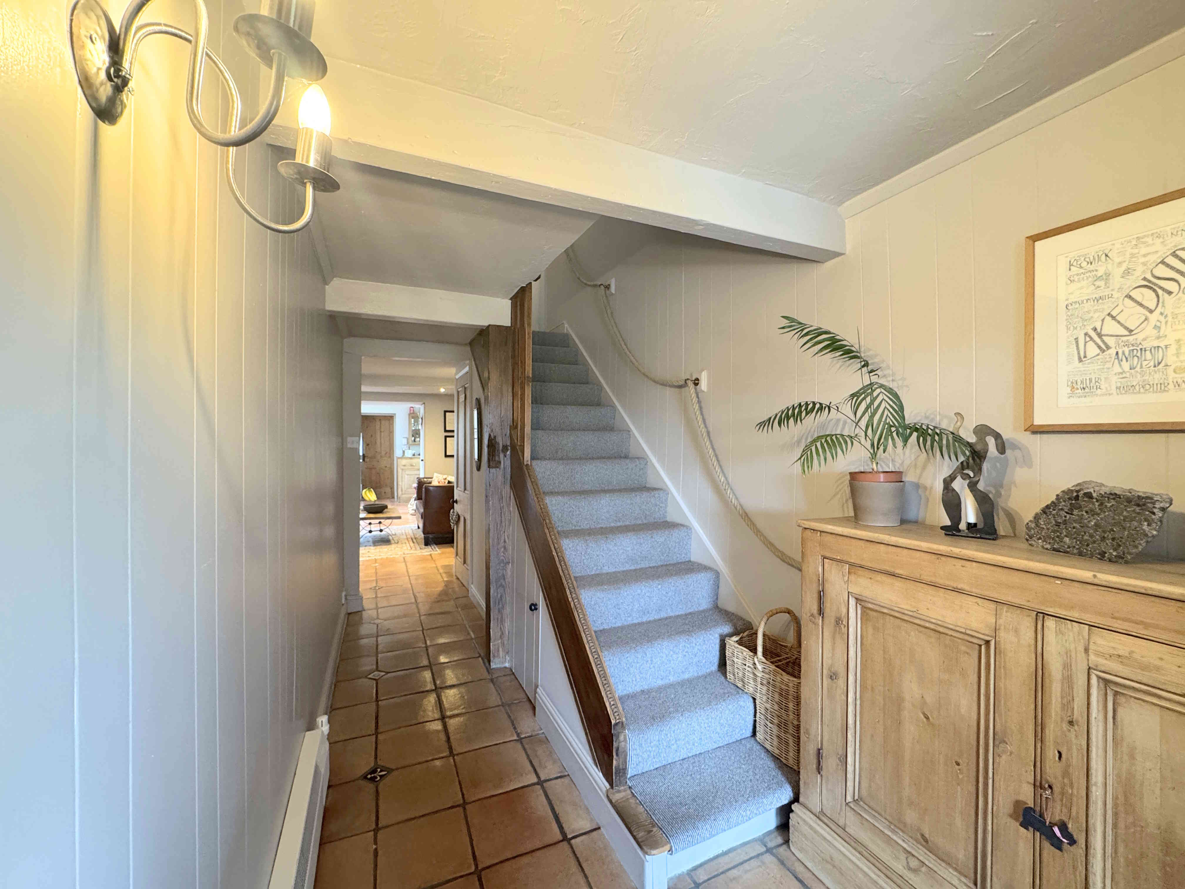 Featuring the same tiled flooring as the kitchen, the inner hall offers an open staircase and useful under-stair storage.