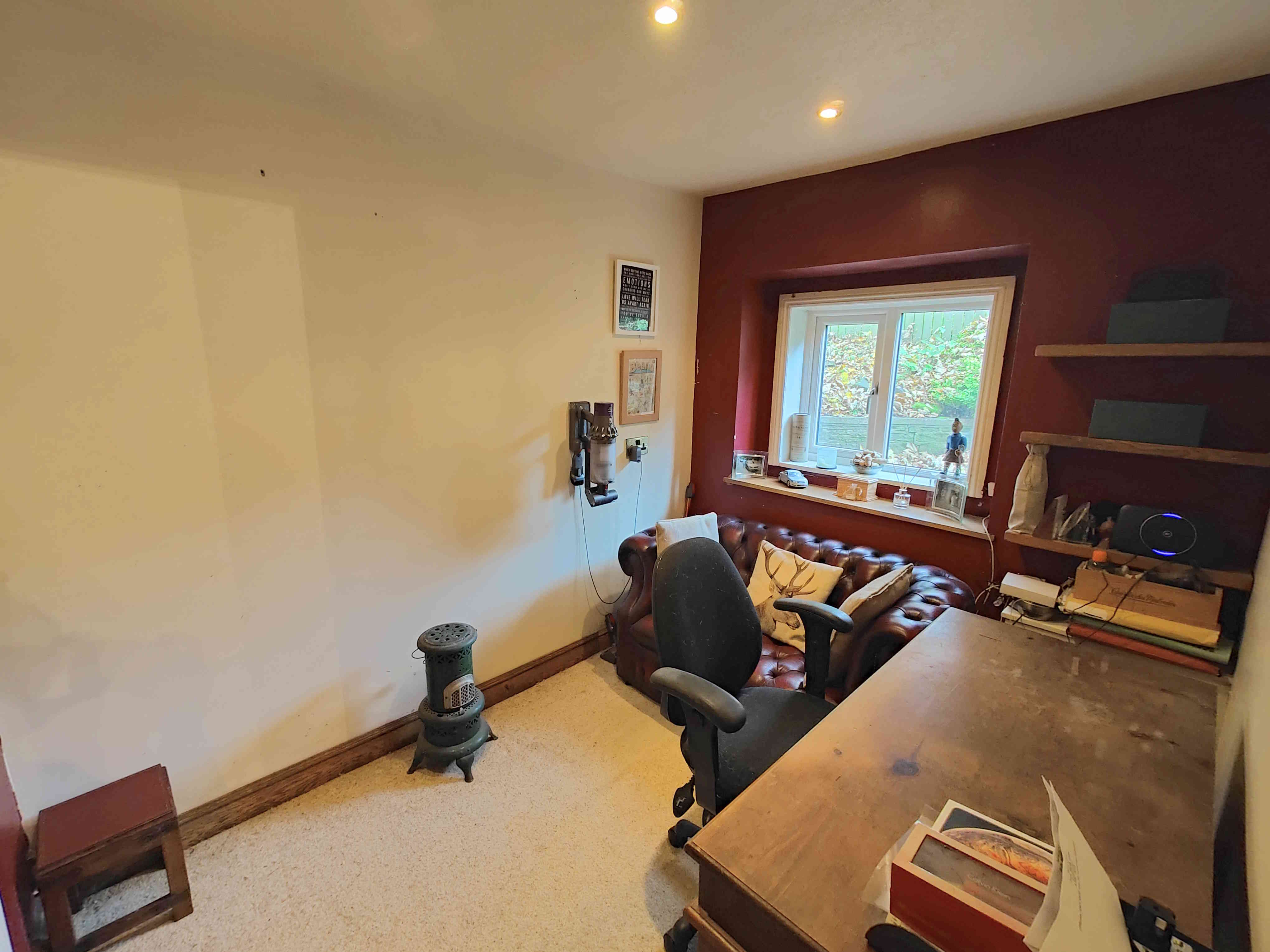 The perfect work from home office room, offering ample space for a desk, sofa and additional furniture.  The office has a door that opens into a generous storage area to the side.  With a carpeted floor, uPVC double glazed window to the side elevation, ceiling inset spotlights and telephone access point.