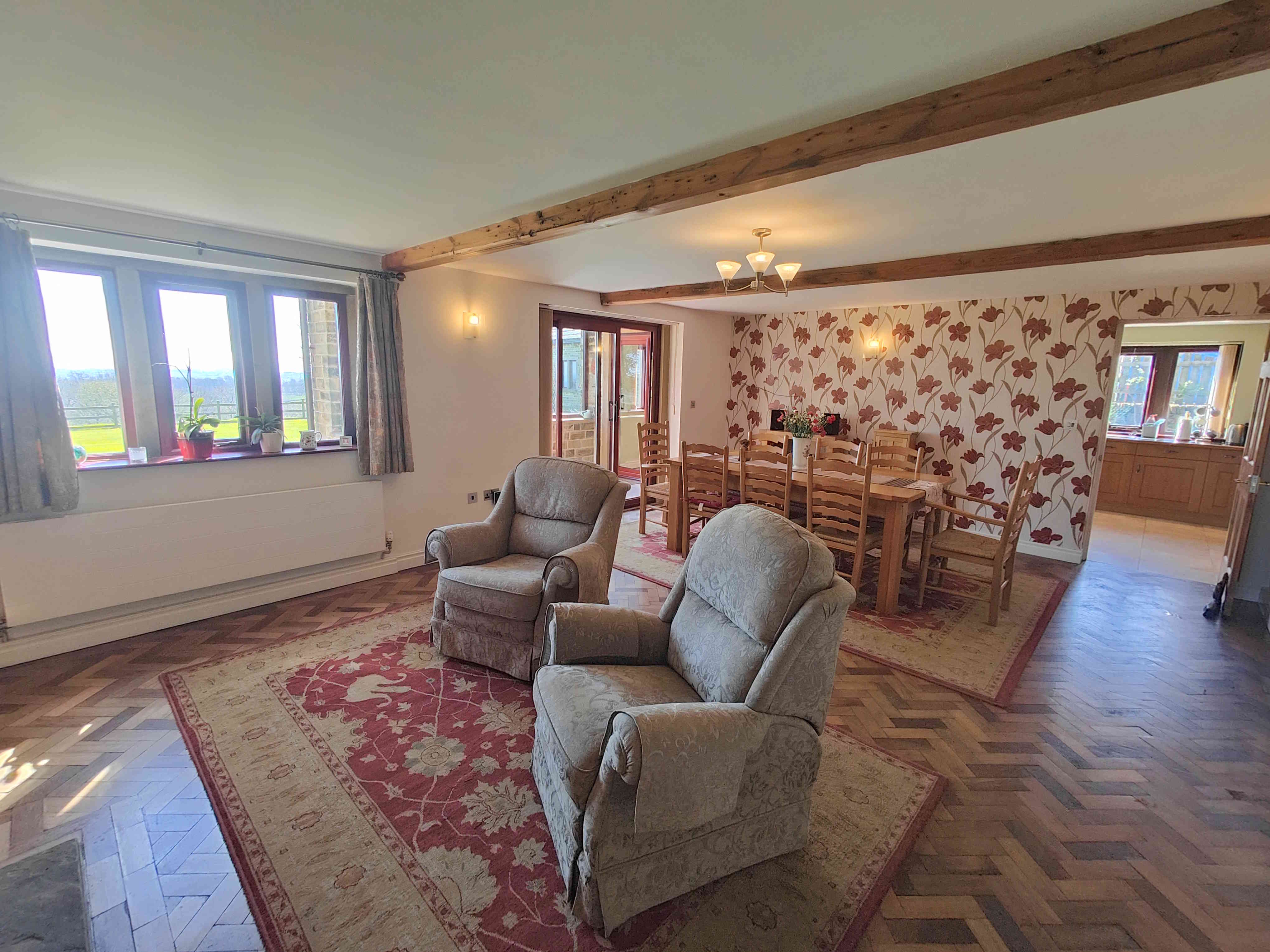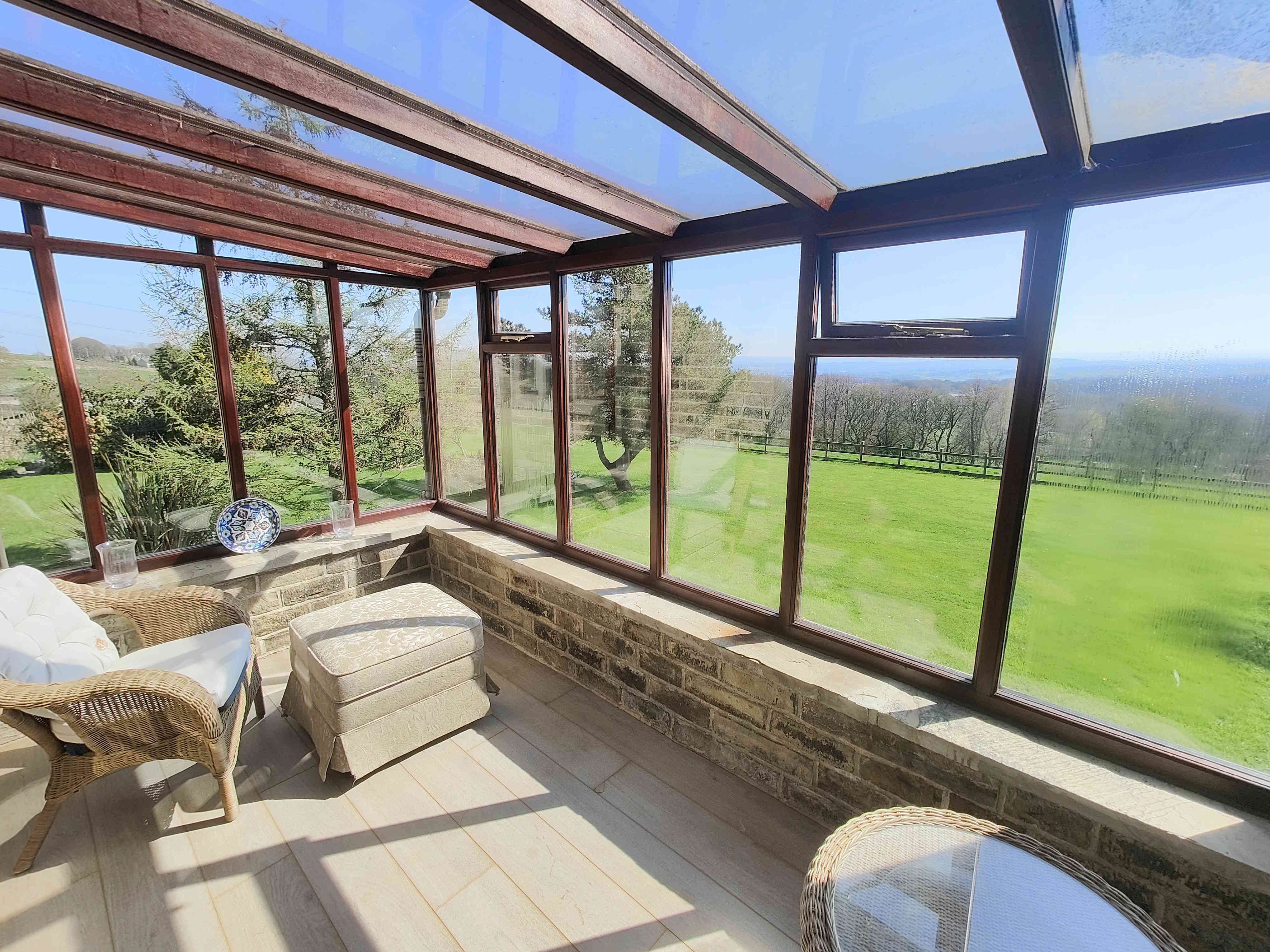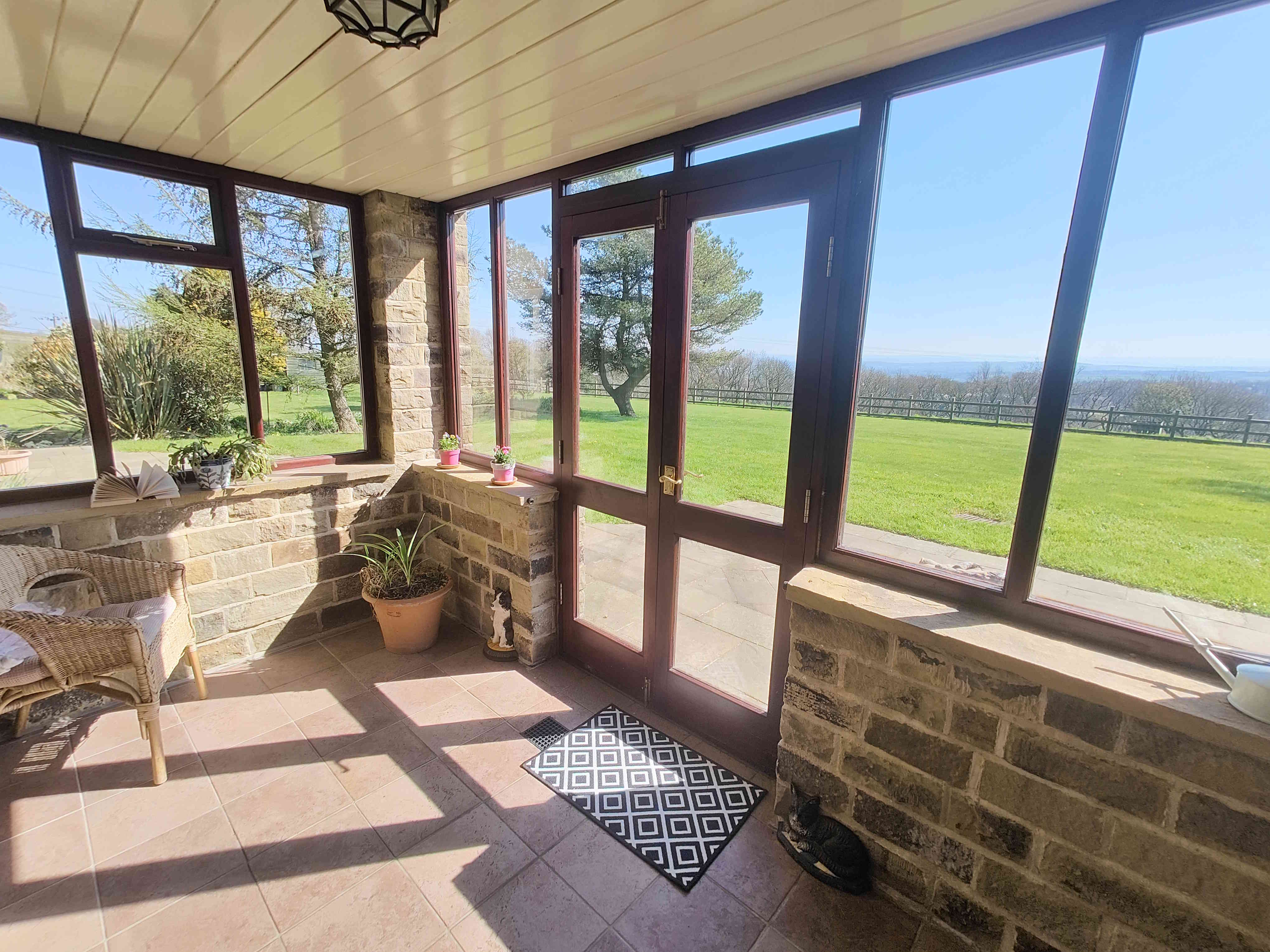 Presenting one of the most stunning views from the property, the upper sun room is the ideal place to sit back and relax whilst overlooking the south facing gardens, the paddock and over Northowram and beyond. With a wood laminate floor, double glazed windows and wall light fitting.
