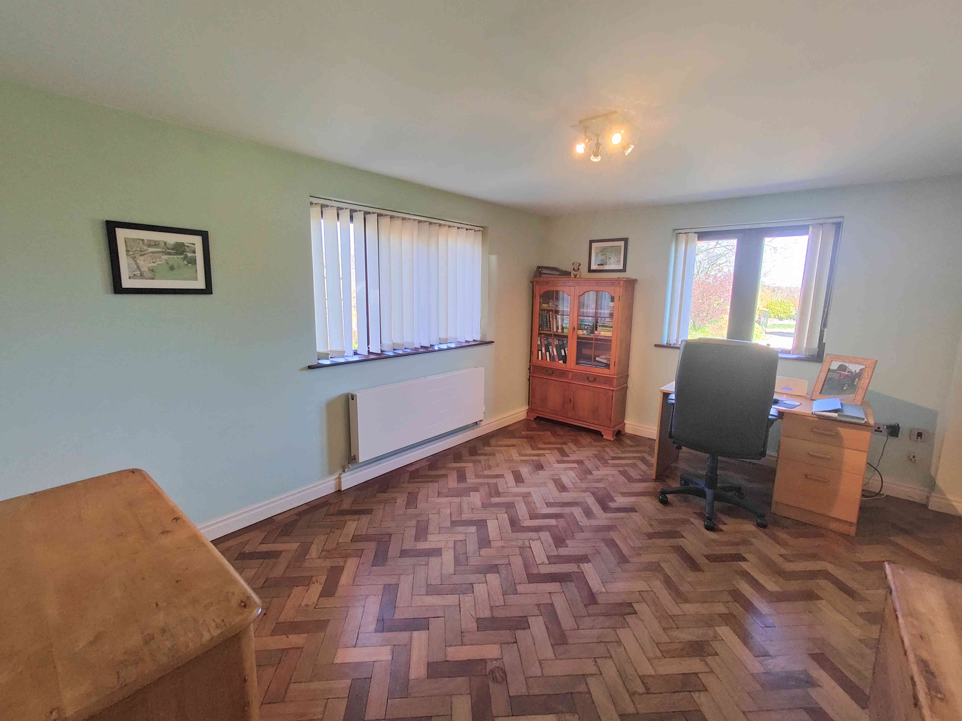 An excellent addition to the property, this multipurpose room is currently utilised as a rather grand work from home office space. The room would also be ideal for a sitting room or as a ground floor fifth bedroom depending on the new owner’s requirements. The room is also dual aspect with double glazed windows to the front and side elevations. With a central light fitting, double glazing, telephone access point and solid Parquet herringbone wood flooring.