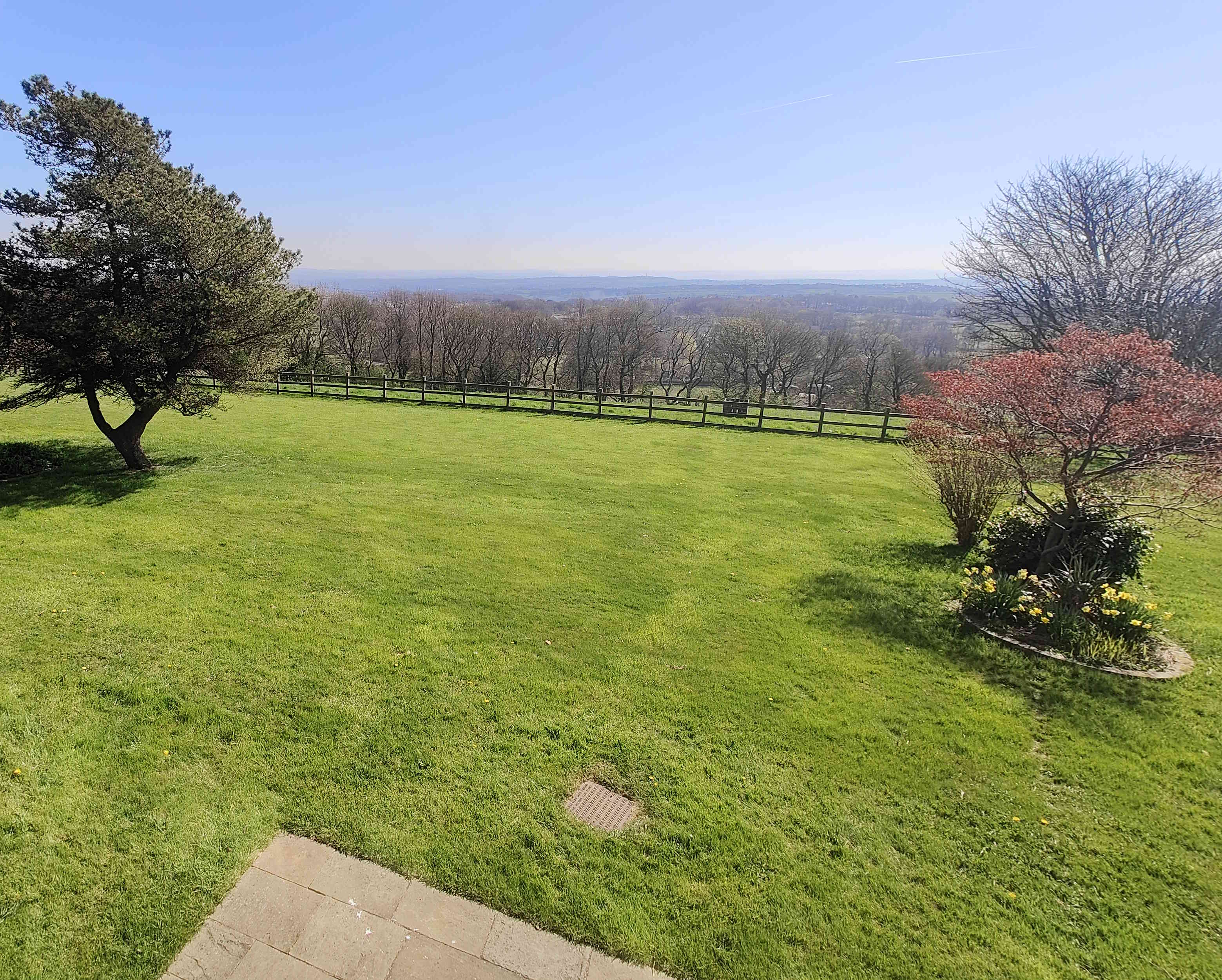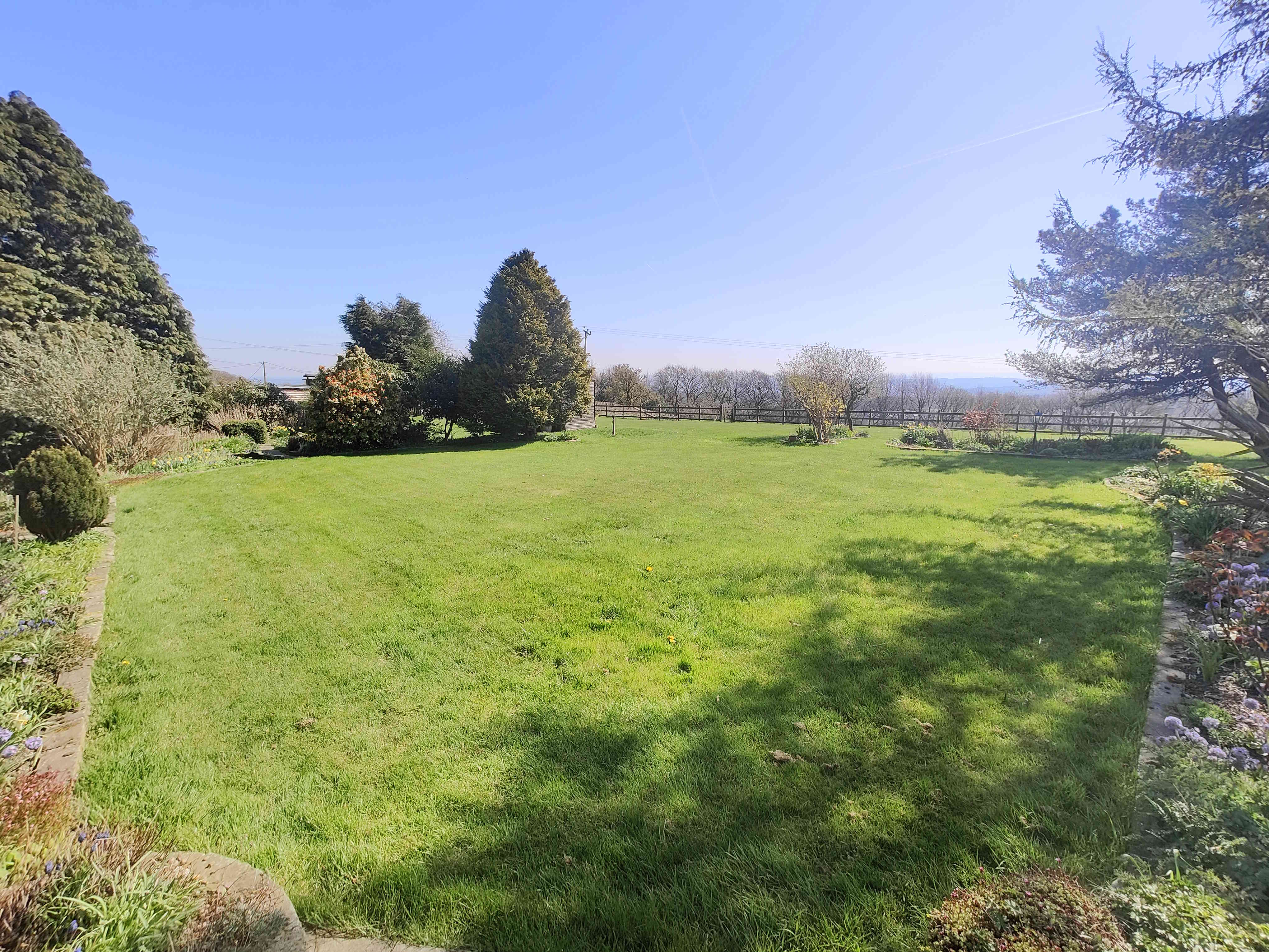 An expansive south facing garden is positioned to the rear of the property and, being approximately ¾ acre in size, presents the ideal space to sit out and relax or for children and pets to play. The perfect location for garden parties, the garden is enclosed by wooden fence and stone wall to the border and is adorned with an assortment of trees and flowerbeds. To one corner is a wooden shed for garden tool storage. Photos and words cannot fully show how picturesque this garden is, with its stunning, far-reaching views. To stand and fully experience it in person is the only way to really appreciate the amazing outlook.