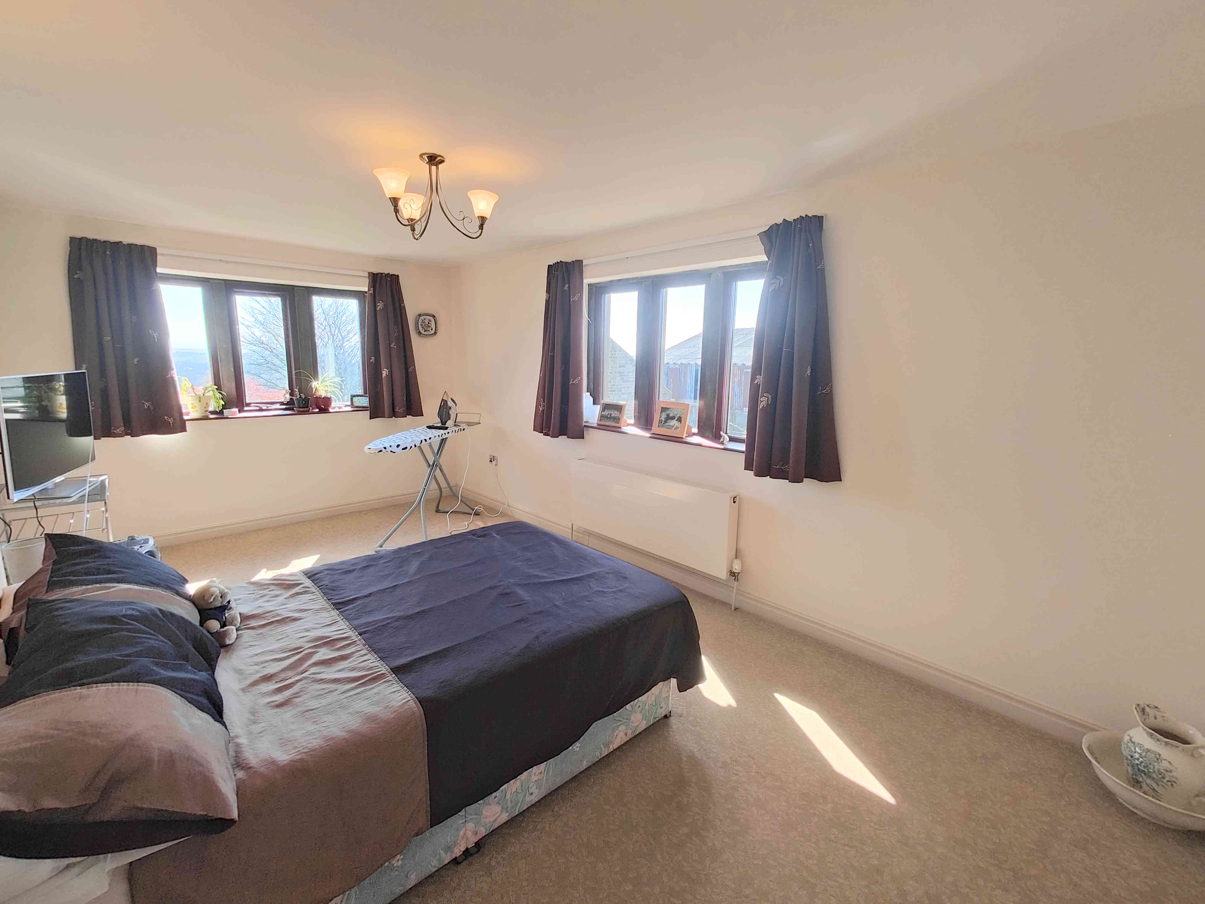 A rather long and large bedroom, again offering space for a king sized bed. Again, being dual aspect with double glazed windows to the rear and side elevations. With a carpeted floor, double radiator and central light fitting.