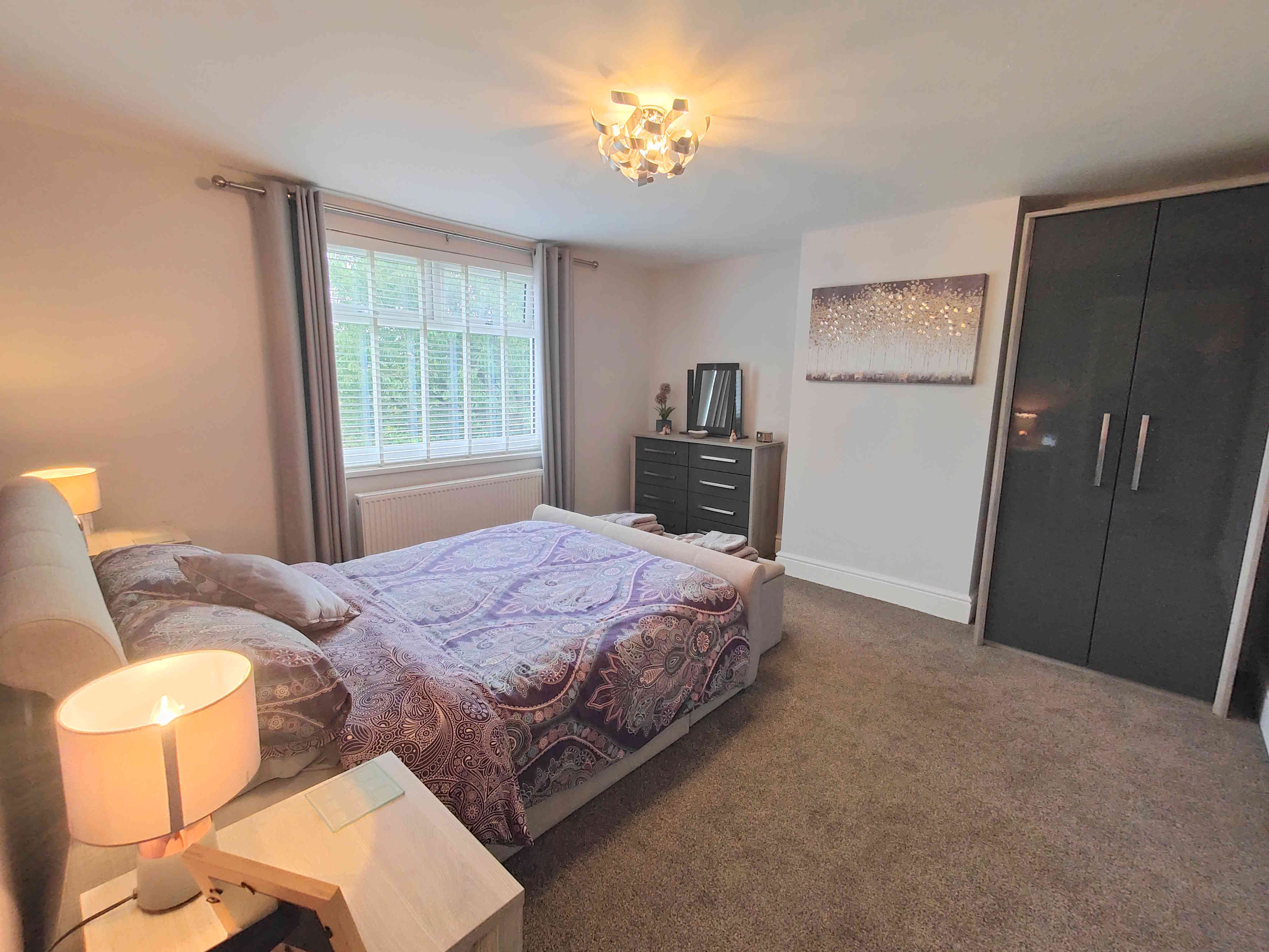 A large and impressive master bedroom that offers more than ample space for a king sized bed along with additional bedroom furniture.  With a carpeted floor, uPVC double glazed window to the front elevation, central light fitting and double radiator.